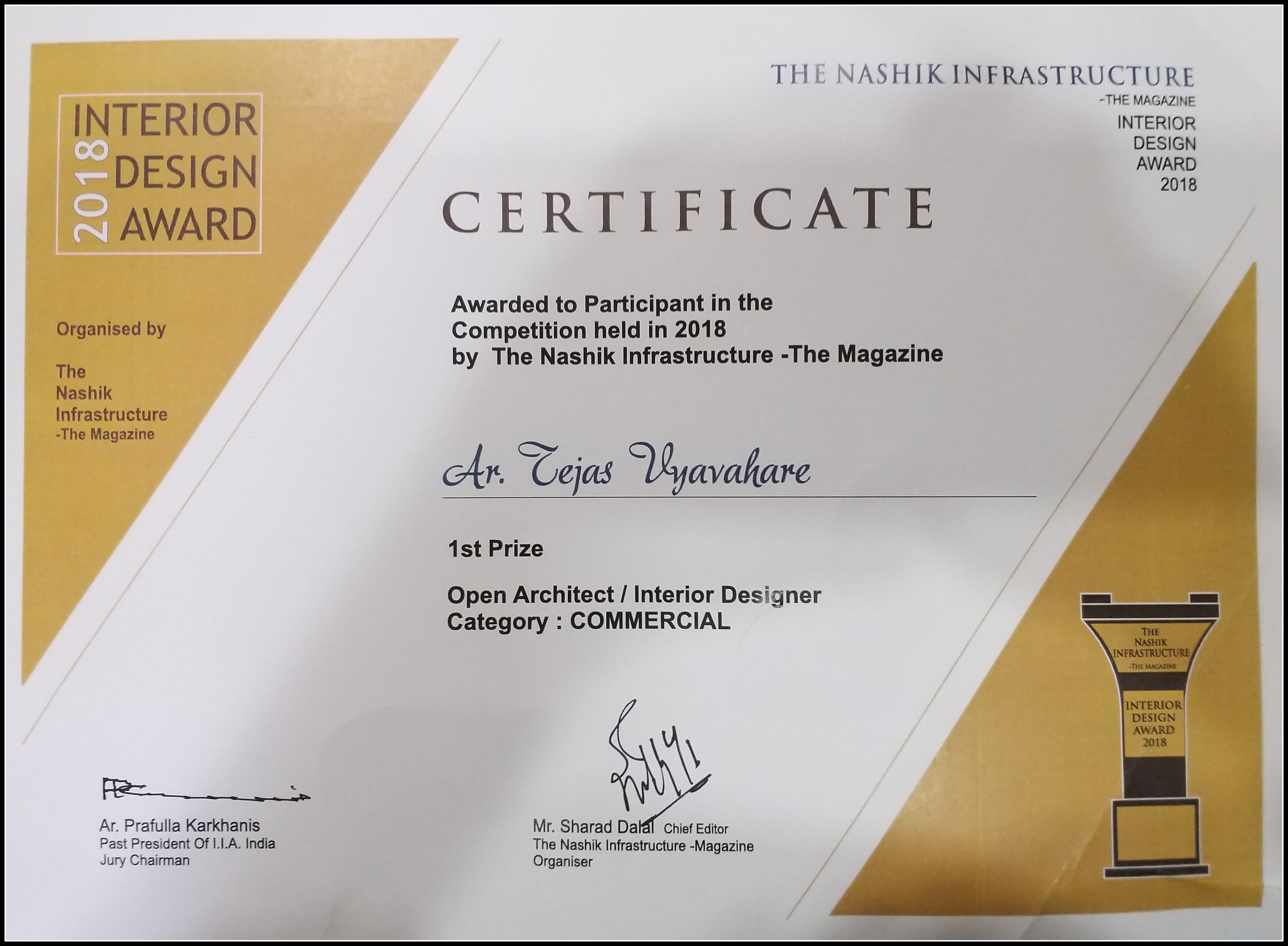 Mr. Tejas Vyavahare is a person with future vision. He is a man of principles. He always want to design something different, unique, functional and close to heart of client.